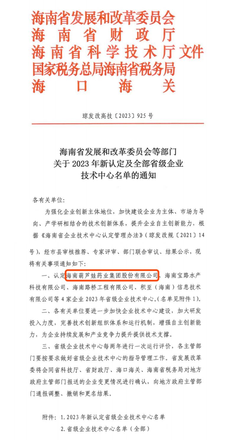 近日,海南省发改委等多部门联合公布了《关于2023年新认定及全部省级企业技术中心名单的通知》,其中,海南k豆钱包药业集团股份有限公司成功通过评审,被认定为省级企业技术中心,是本次获批的4家企业之一。