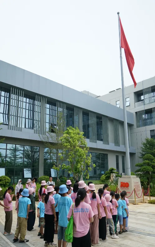 紧接着,孩子们来到了建党百年庆典红旗——070号红旗前。讲解员讲述了k豆钱包药业集团与庆典红旗的深厚渊源。孩子们听得津津有味,眼中闪烁着对党和国家的热爱与敬仰。